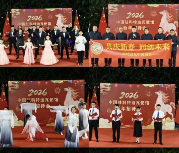 近日,中国驻科特迪瓦使馆举办2026年新年招待会,在科华侨华人、中资企业、孔子学院、留学生代表逾200人欢聚一堂,共迎新春。